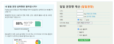그리고 자신의 나이와 체중, 신장으로 하루에 필요한 일일권장칼로리를 계산 할수 있습니다.