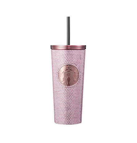 반짝이는 핑크 라인스톤이 포인트인 473ml 용량의 찬 음료 전용 콜드컵입니다.