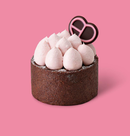 가나슈 크림이 들어있는 초코 바움쿠헨 위에 부드럽고 향긋한 딸기 크림이 올려져 조화를 이루는 케이크입니다.