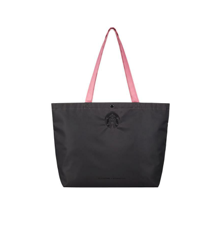 핑크 핸들이 포인트인 넉넉한 크기의 토트백입니다.