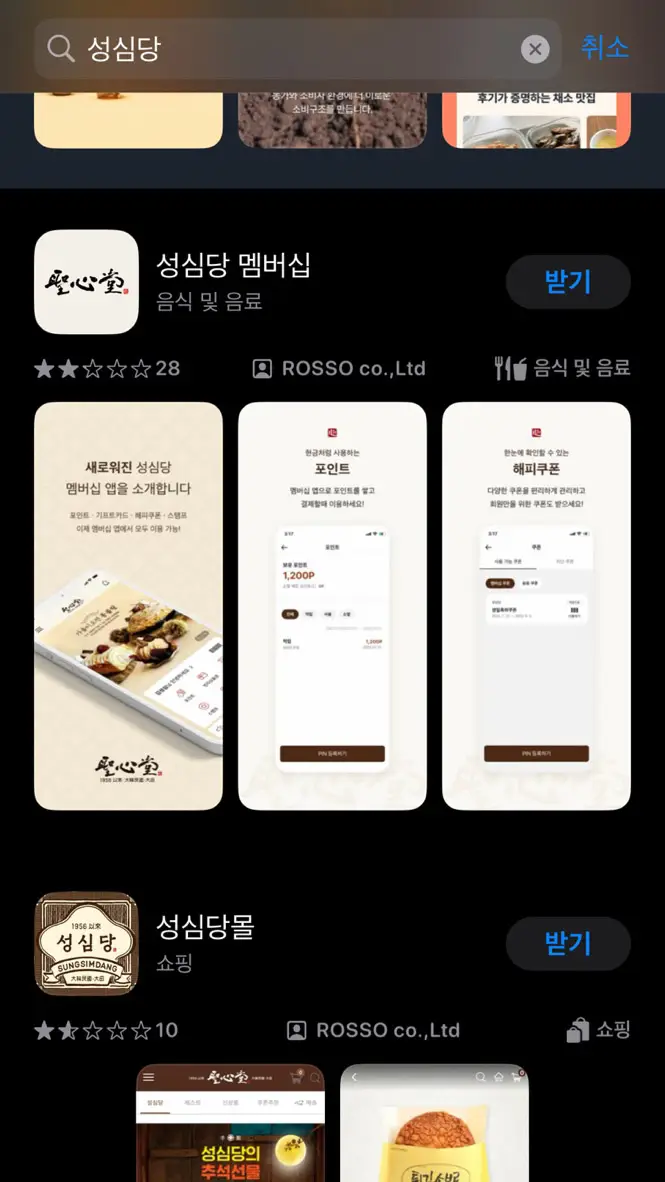 구글 플레이나 애플 스토어에서 ‘성심당’이라고 검색하시면 성심당 멤버십과 성심당몰이 있습니다.