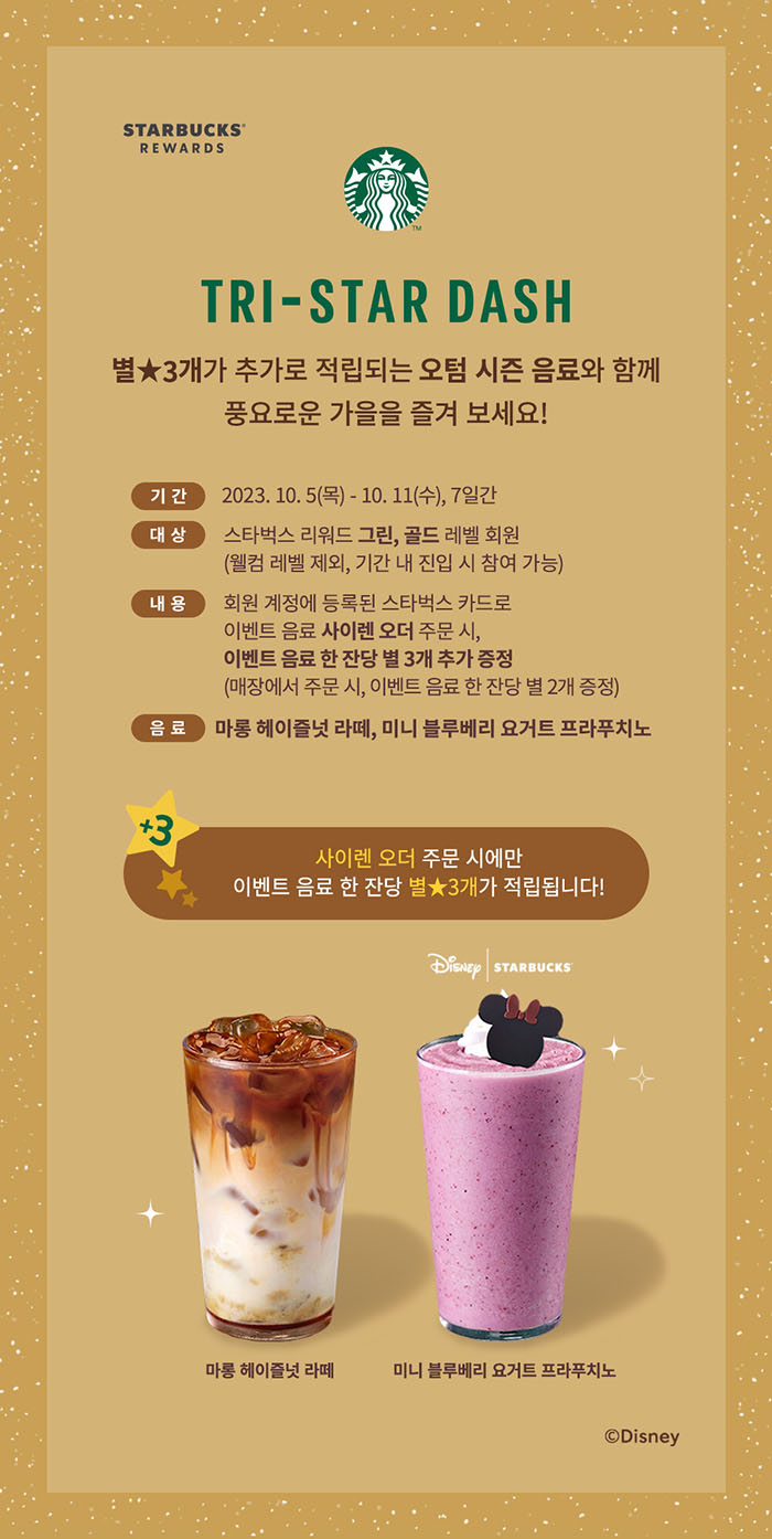 별 3개가 추가로 적립되는 오텀 시즌 음료와 함께 풍요로운 가을을 즐겨보세요!