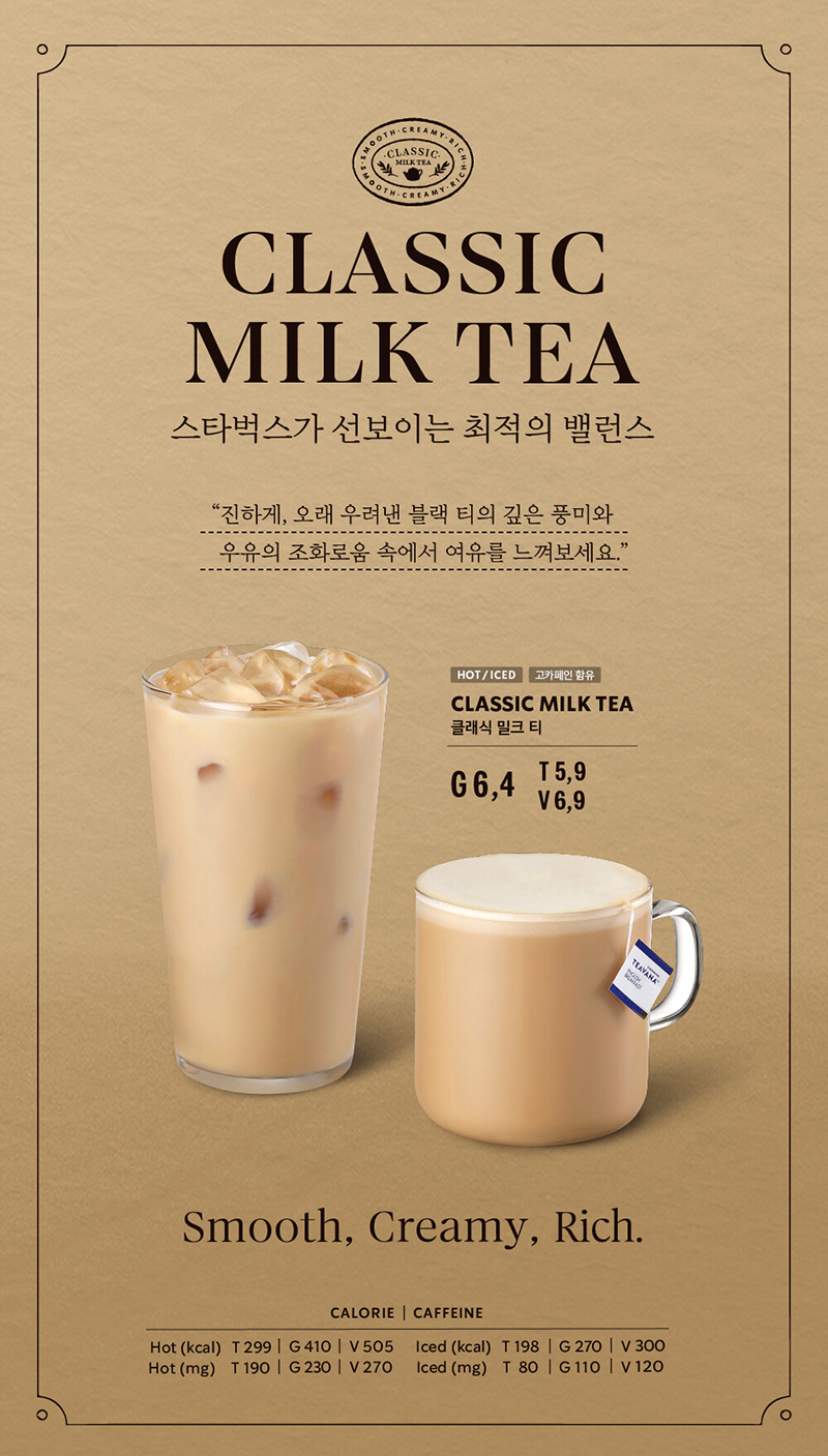 스타벅스가 선보이는 클래식한 밀크 티로,
