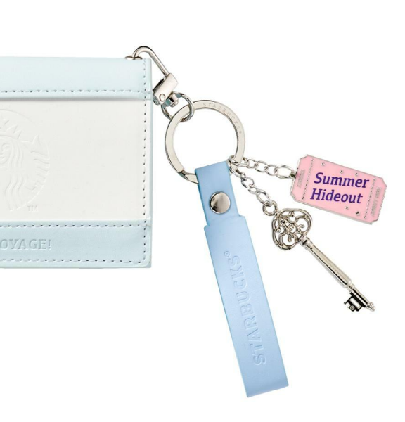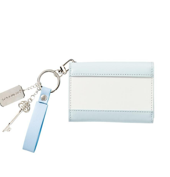 스트랩과 열쇠, 티켓 모양의 귀여운 키링도 달려 있어 휴대하기 편리하며, 밀키한 블루색상으로 깔끔하고 귀여움이 돋보이는 상품입니다.