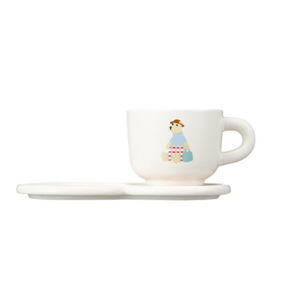 여행을 떠나는 허기베어를 담은 350ml 용량의 머그앤 소서입니다.