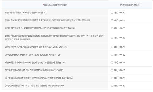 ➡️ 접종 당일 작성한 예진표만 효력이 발생하며 인플루엔자와 코로나19 백신을 동시 접종할 경우 각각의 전자 예진표를 작성해야 합니다.